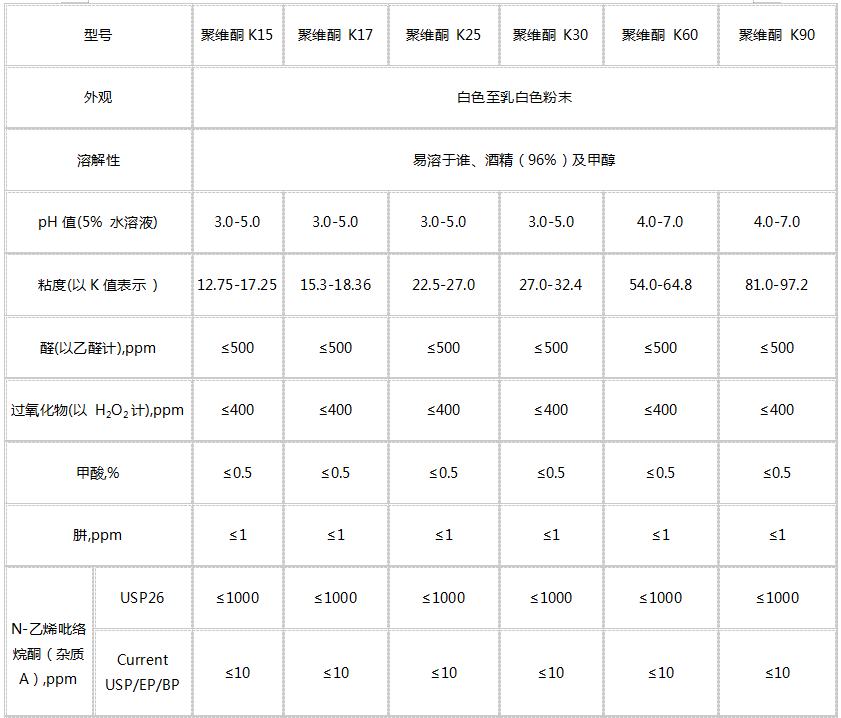 產(chǎn)品特性:聚維酮為白色至乳白色白色粉末。易溶于水、酒精等多種有機(jī)溶劑。具有優(yōu)良溶解性、成膜性、化學(xué)穩(wěn)定性等。